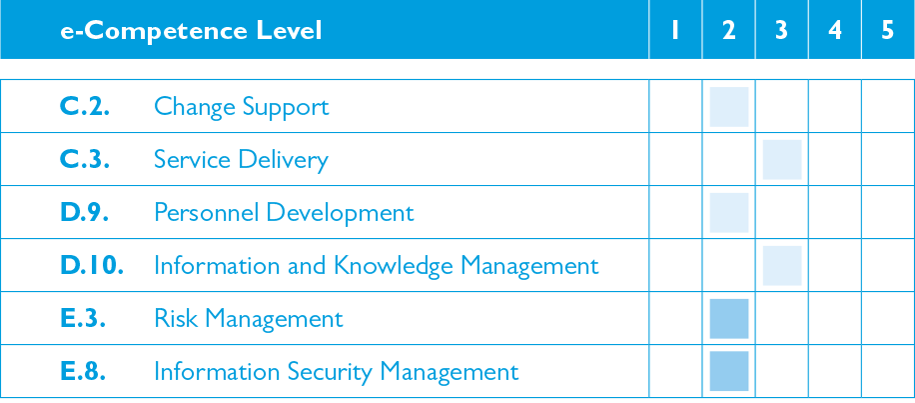 e-Competence Framework area MANAGE: De toewijzing van dit certificaat aan het e-Competence Framework (e-CF®) volgens EXIN.